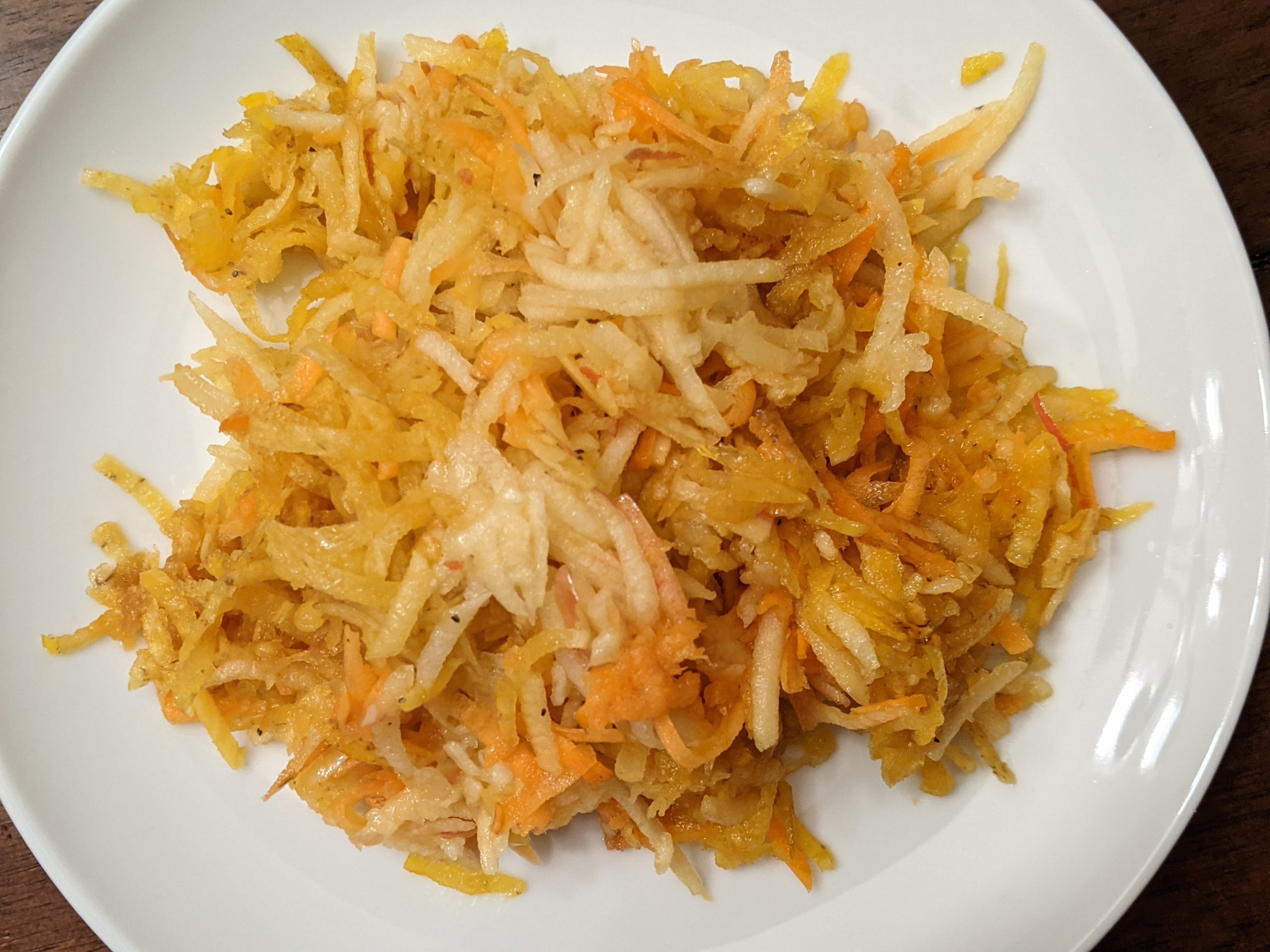 Simple, refreshing fall flavors. Use a shredding blade on a food processor to make this quick apple beet slaw. Make sure to use a tart apple, such as Granny Smith, to counter the sweetness in the beets and carrots. If it is too tart for you, then you can add a tablespoon of honey. You can use golden or red beets, but be warned, if you use red beets, your apples will be dyed red!