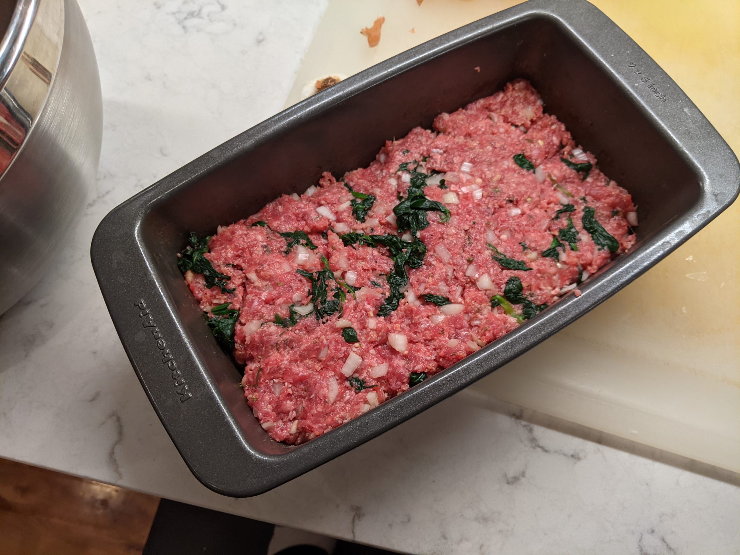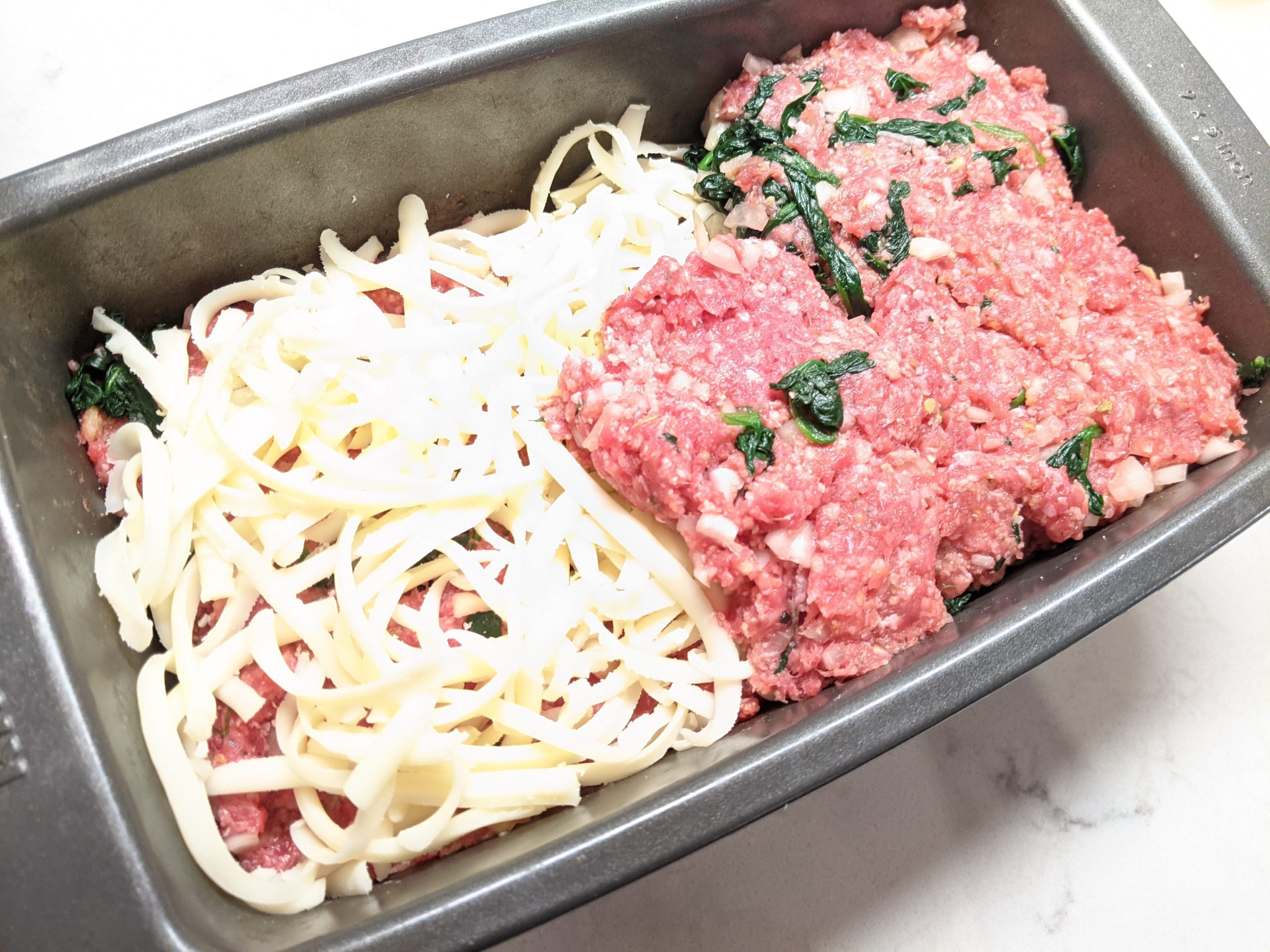 - Pat half the meat into a loaf pan