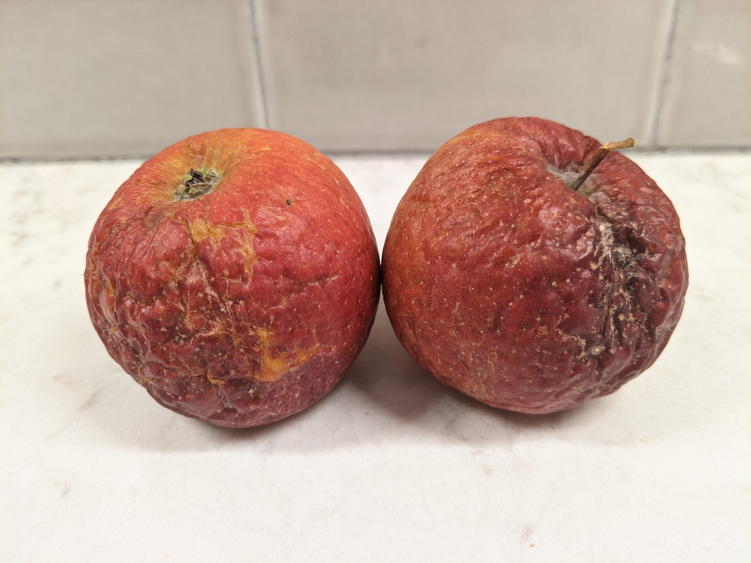 While I was doing my meal planning this week, I came across some apples that we picked in September/October that were all wrinkled on the outside (see picture below). I cut one in half and it wasn’t rotten at all, just a little soft on the outside.