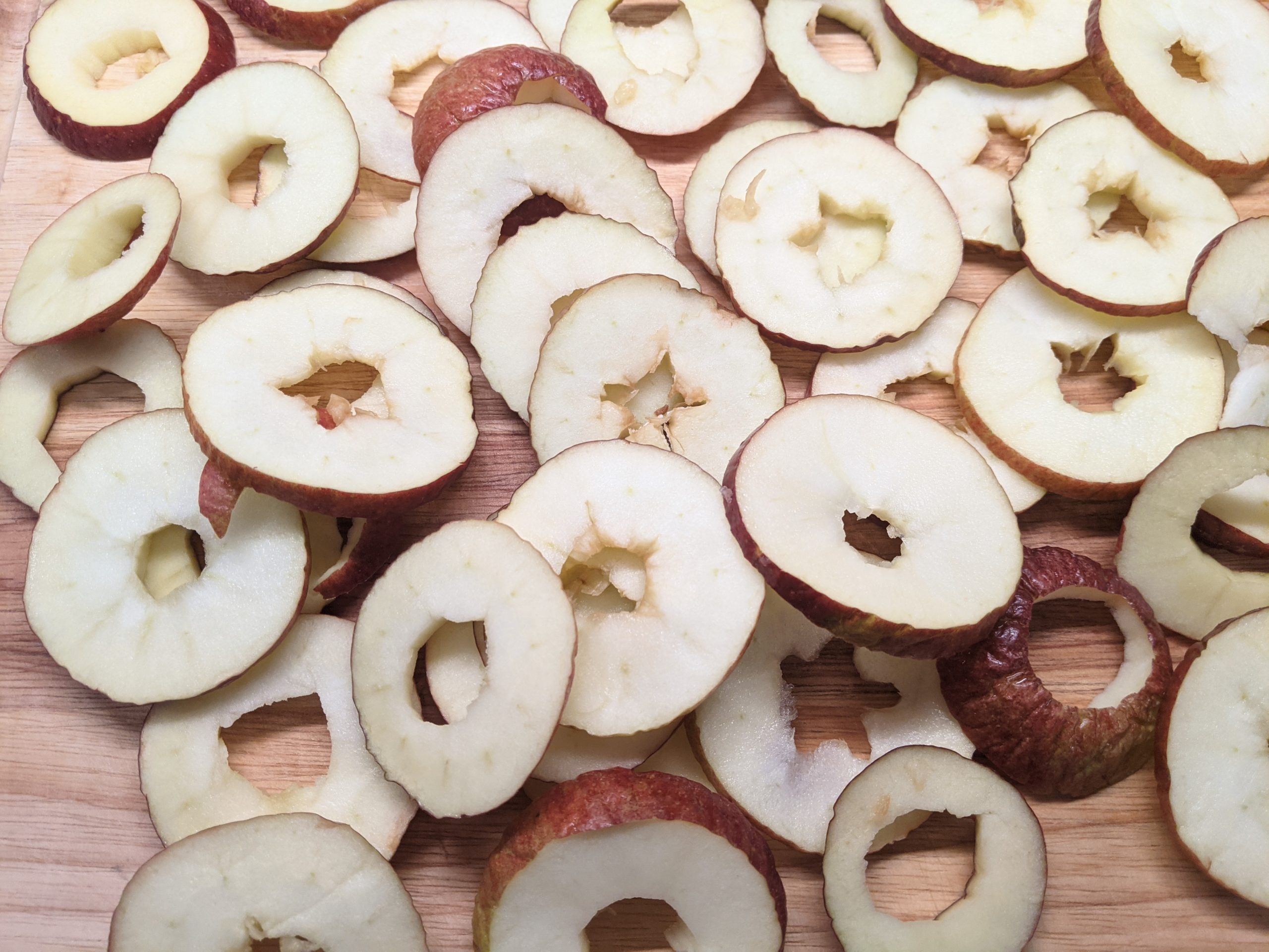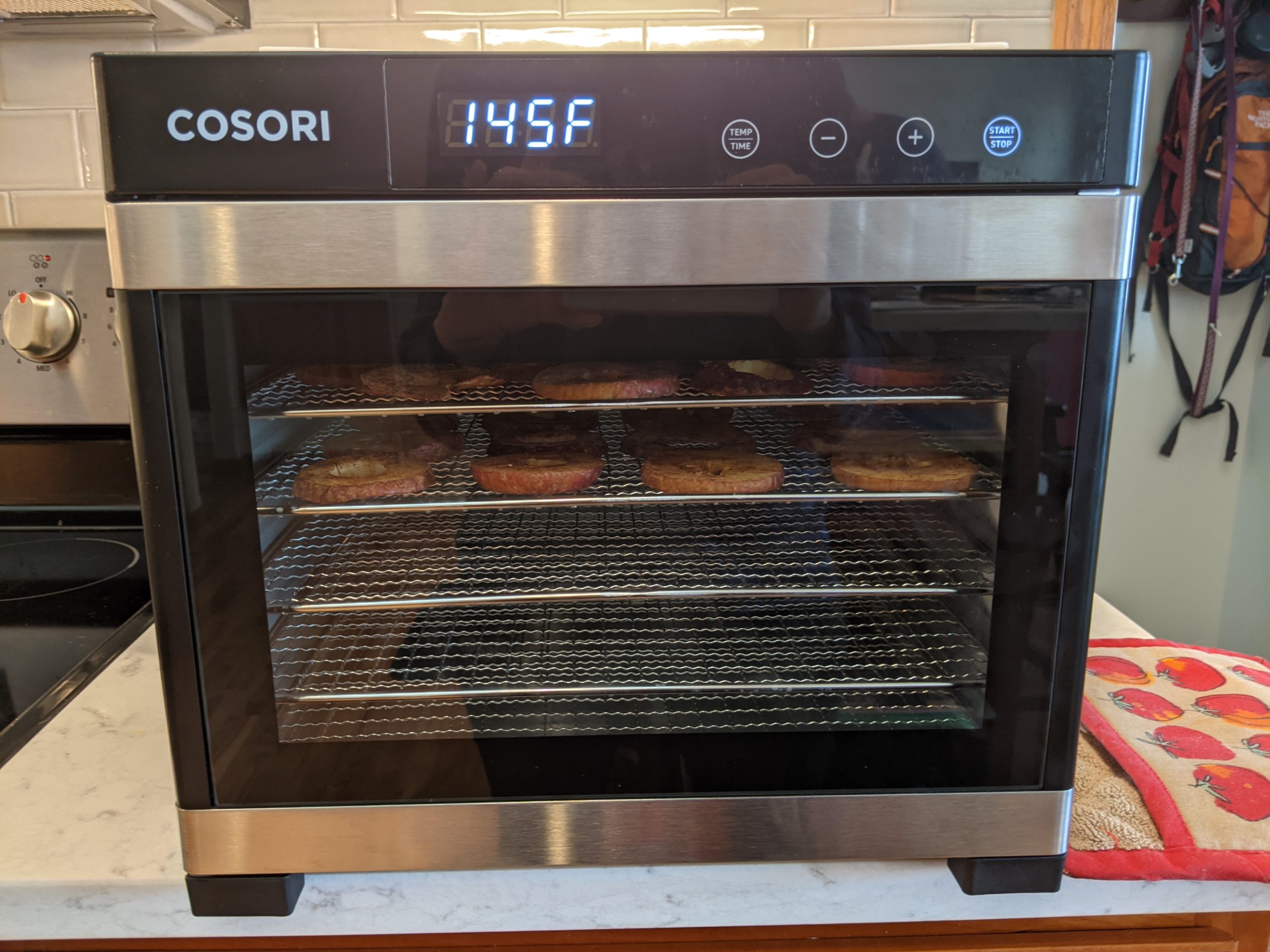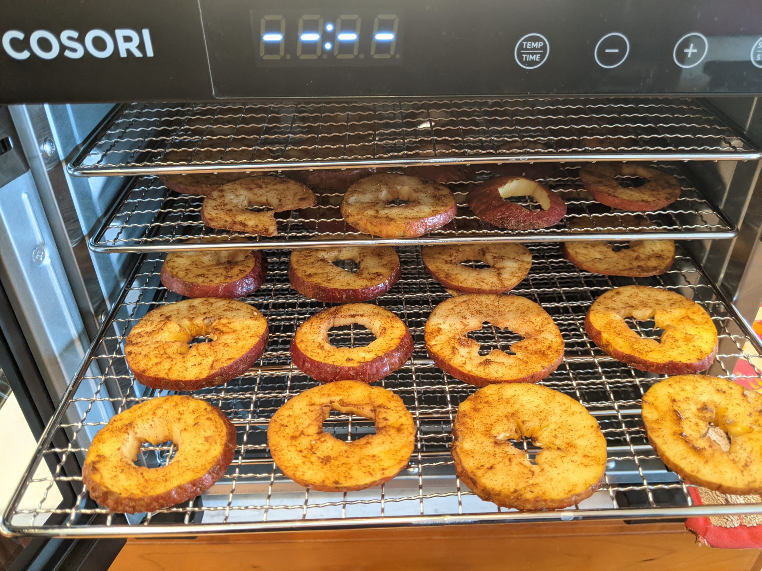 If you are interested in dehydrating, start looking for a machine now so you have something before the summer harvest. I searched for quite a while to find one secondhand, but there was minimal stock on the market and nothing that I felt was food safe. I did a lot of research to find just the one that I wanted, and settled on this Cosori. It is mostly stainless steel, the racks can go in the dishwasher, it is large enough to make big batches or multiple types of food at a time, it is energy efficient, you can see your food through the glass pane, and it is easy to program the time and temperature. So far I love it!Check out the pictures below of the apple dehydrating process and my Cosori dehydrator: