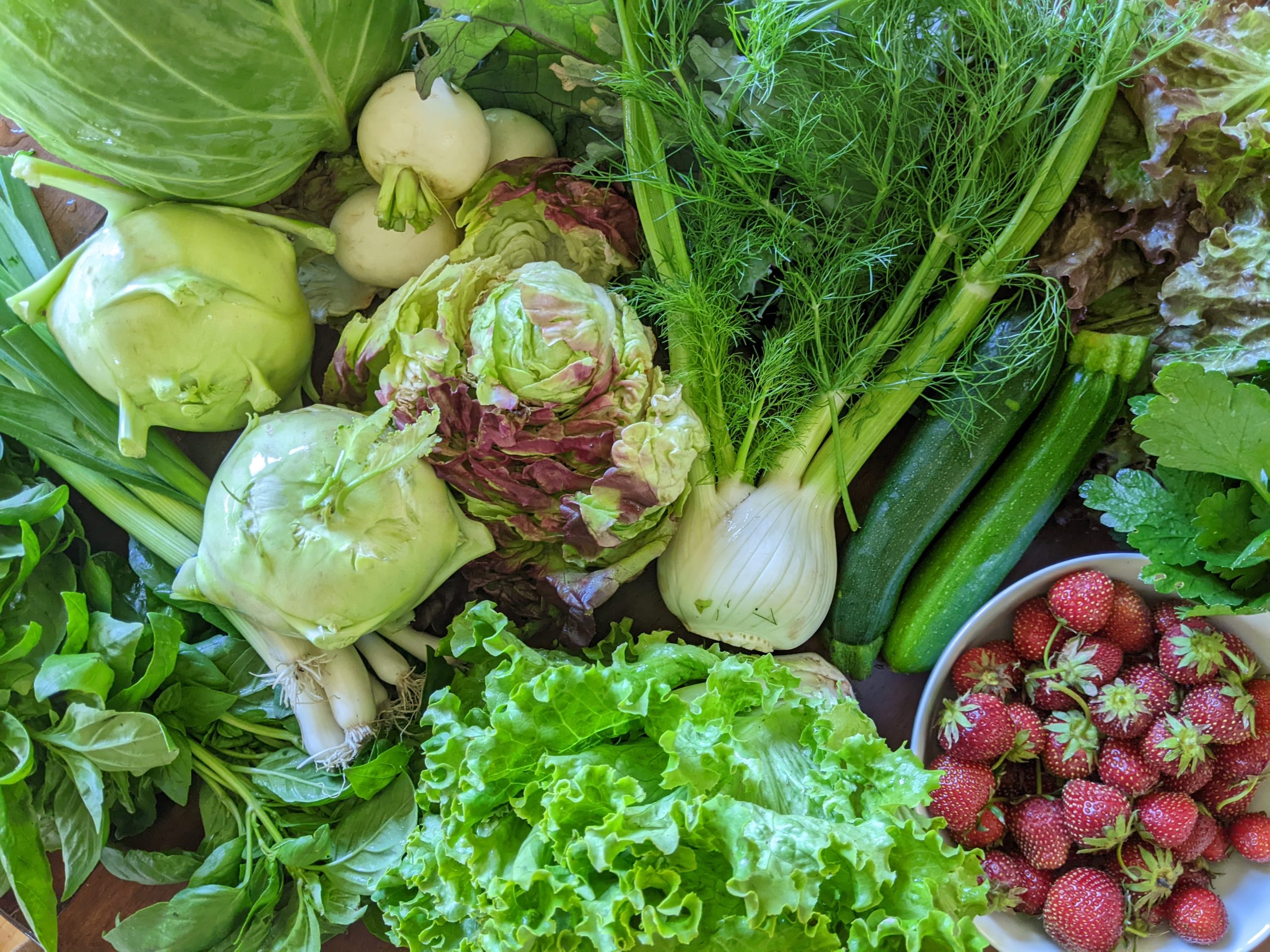 Keewaydin Farms: Organic produce and beans for 6 weeks in the spring. Some of the foods they give us are foraged and we get spring treats like asparagus and rhubarb.